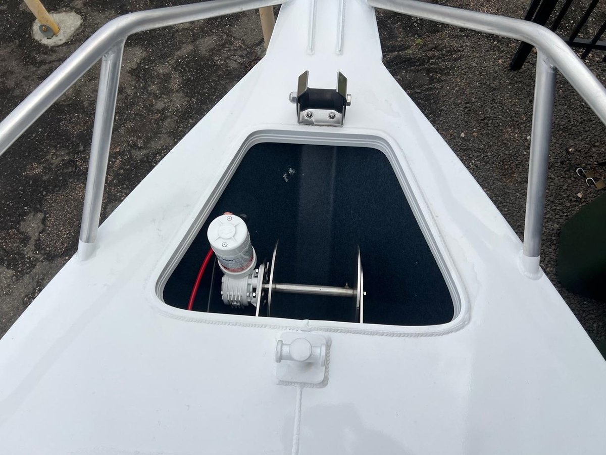 • Muir 600W drum winch with 80m rope, 5m chain & feed roller